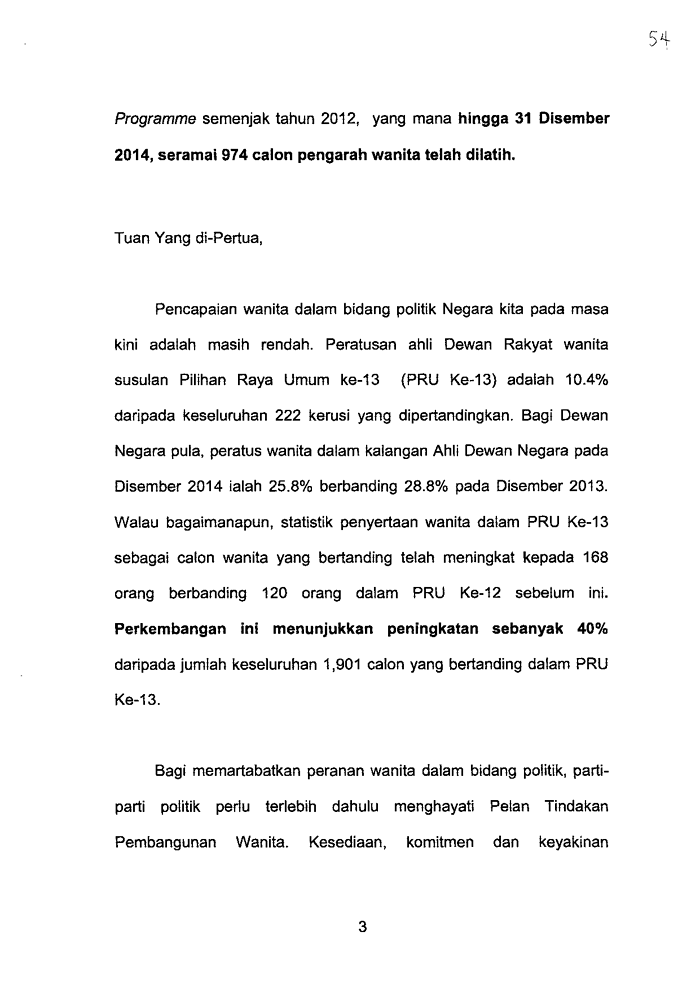 Saya selaku Ketua Wanita Umno dan BN dah beri senarai yang panjang kepada PM untuk dipertimbang sebagai calon. Kalau kita lihat jumlah calon wanita yang bertanding pada PRU-13 tidak sangat menunjukkan peningkatan biarpun lebih banyak berbanding 2004. Kalau Pas-Pkr hanya 6 kerusi bertindih Umno 61 kerusi 10 kali ganda banyakkan.